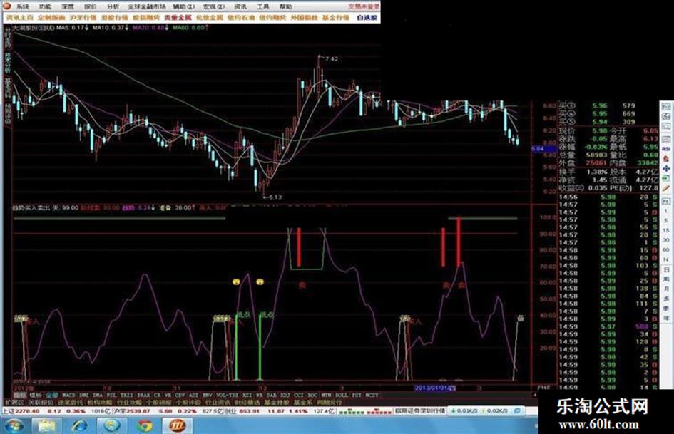 自用的一个副图指标,趋势买入卖出,绝对必杀的提示指标,无未来。
