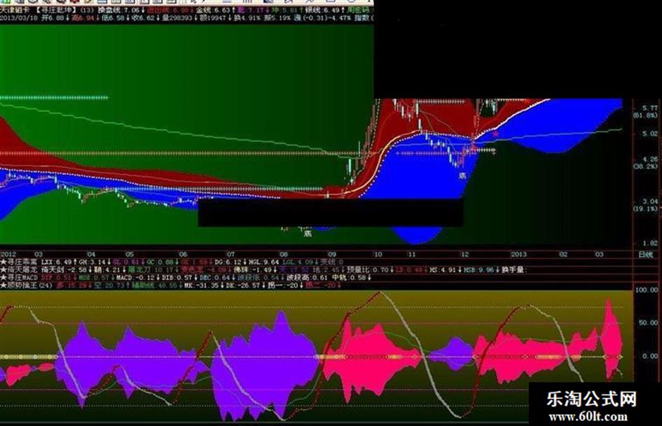下方贴图是本人组合指标,其中的红色和灰色彩带为KD指标,本贴图的参数N的取值为24。