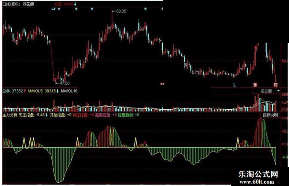 控盘趋弱:IF(控盘<REF(控盘,1) AND 控盘>0,控盘,0),COLOR00FF00,LINETHICK1;
