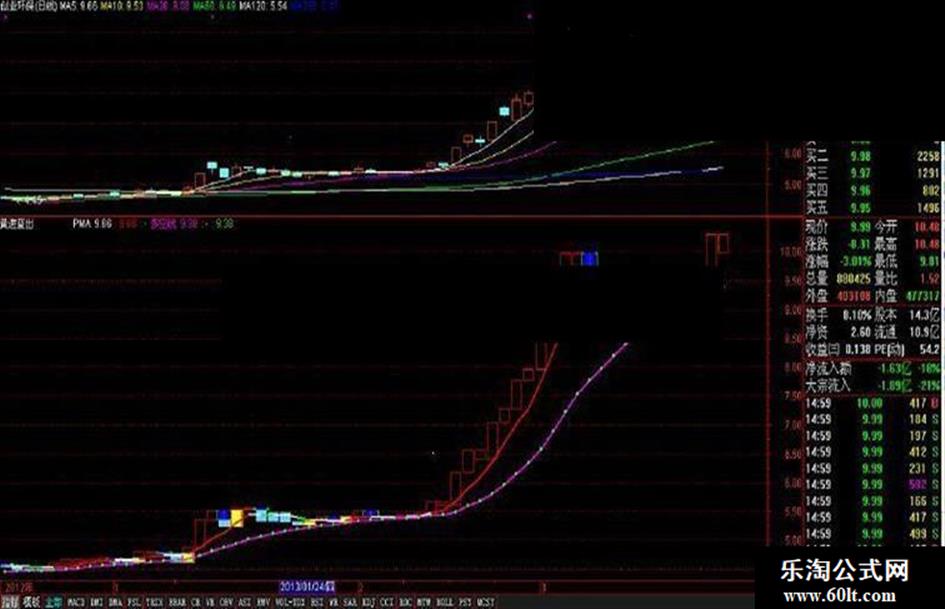 多空线:(20*X+19*REF(X,1)+18*REF(X,2)+17*REF(X,3)+16*REF(X,4)+15*REF(X,5)+14*REF(X,6)