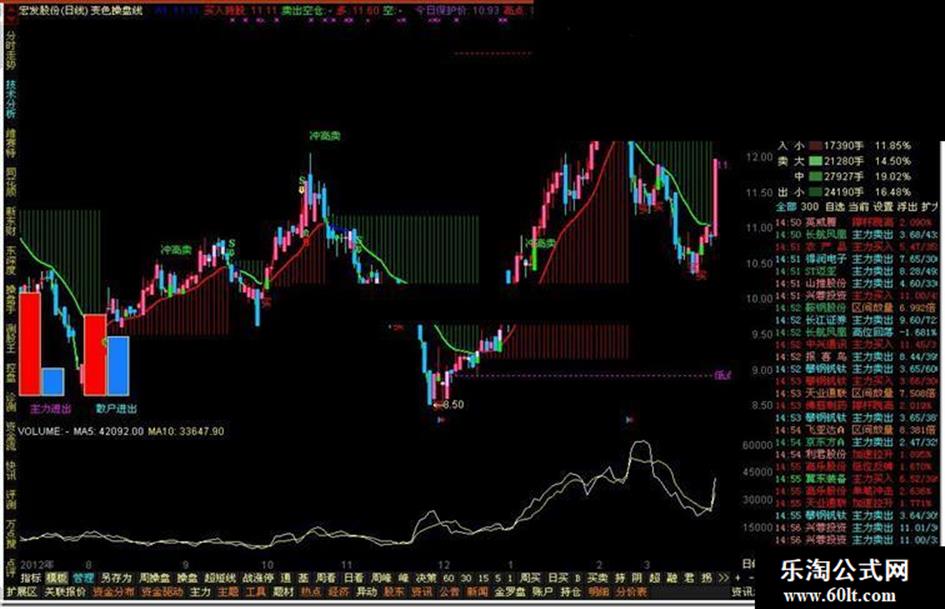 DRAWTEXT_FIX(CURRBARSCOUNT=1,0.015,1,0,'主力进出'),COLORMAGENTA;