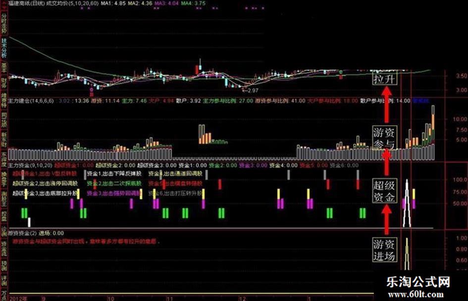 通达信【主力进场资金】副图/选股指标融合价格波动强度与成交量分布原理规避假放量陷阱源码