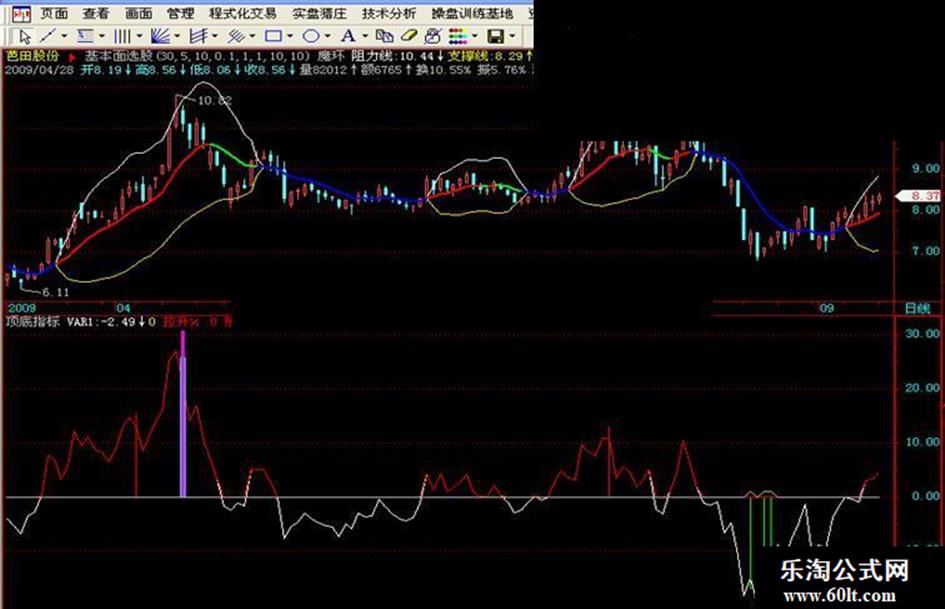 短底: STICKLINE(VAR1<-9 AND VAR1> REF(VAR1,1),VAR1-2,0,3,0), colorgreen;