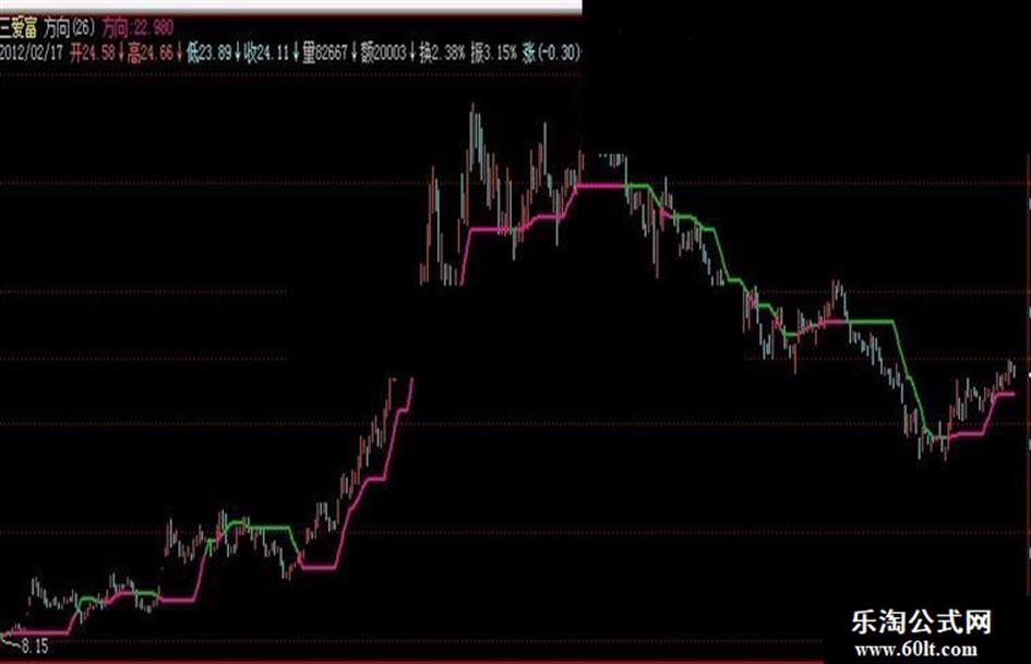 航向:=REF(均价,BARSLAST(CROSS(黑马线,MA(黑马线,5)))),COLORWHITE,LINETHICK;