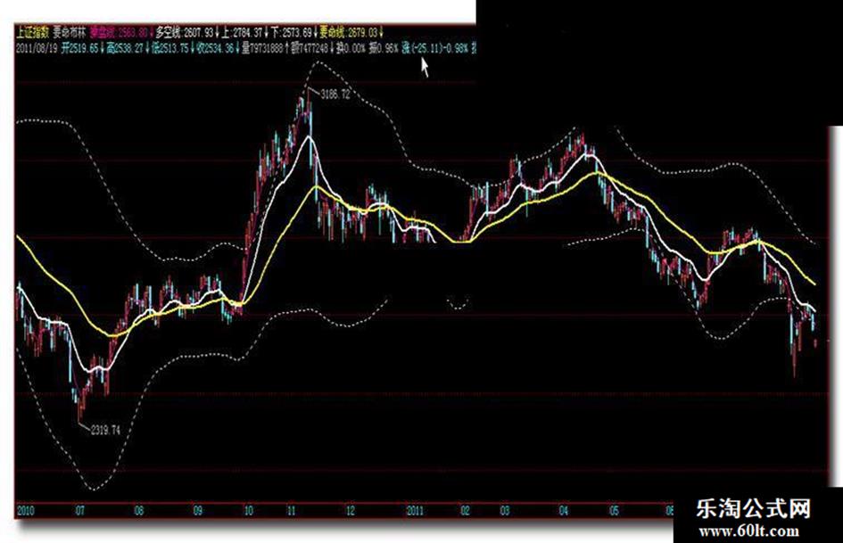 下:引- 2*STD(多空线,60) COLORWHITE,LINEDOT;