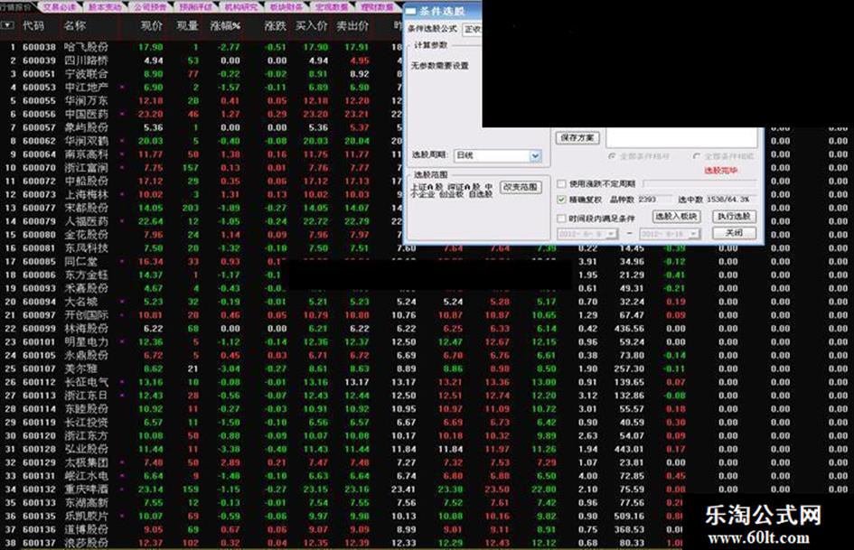 参考论坛上别人的公式,修改成直选流通股本在6万内,年收益为正的公式,建立股票池,缩小范围。