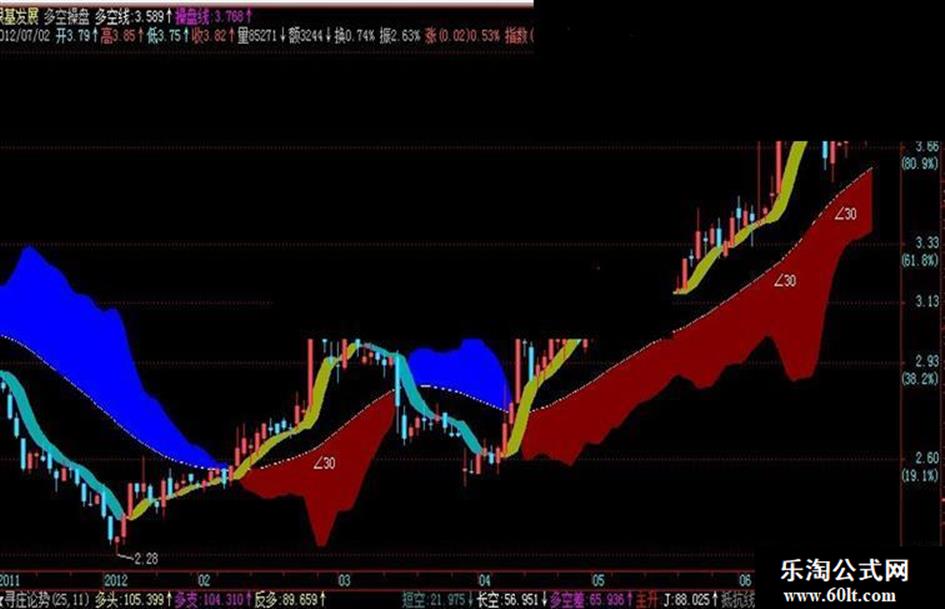 DRAWTEXT(filter(角>=30 and 多空线>ref(多空线,1),8),多空线*0.98,'∠30'),colorwhite,ALIGN0;