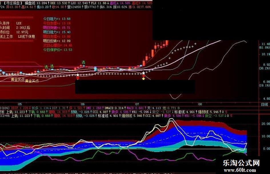 本指标是对前期所发做多做空指标的优化,一是加入了量标准差,就是彩带和标准差线及强弱线,二是对WR的参数进行了优化。用法说明,量方差中的白线基本要求是要在强弱线上运行,在绿彩带上方运行较好,在红彩带上方运行更好;第二要看CCI与WR的关系这是波段操作的好依据,CCI上穿WR是较好的买点,此外在参照CCI与WR的数值。