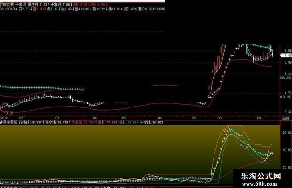 本指标含有成本分布和流通盘大小两个函数,认为这两个函数是未来函数的同学请闪开,主图主要是对十字线的优化,副图寻庄量线优化较大,副图请注意当经过一波大幅上涨后如果出现高杠与行情线夹十字线时注意逃顶。