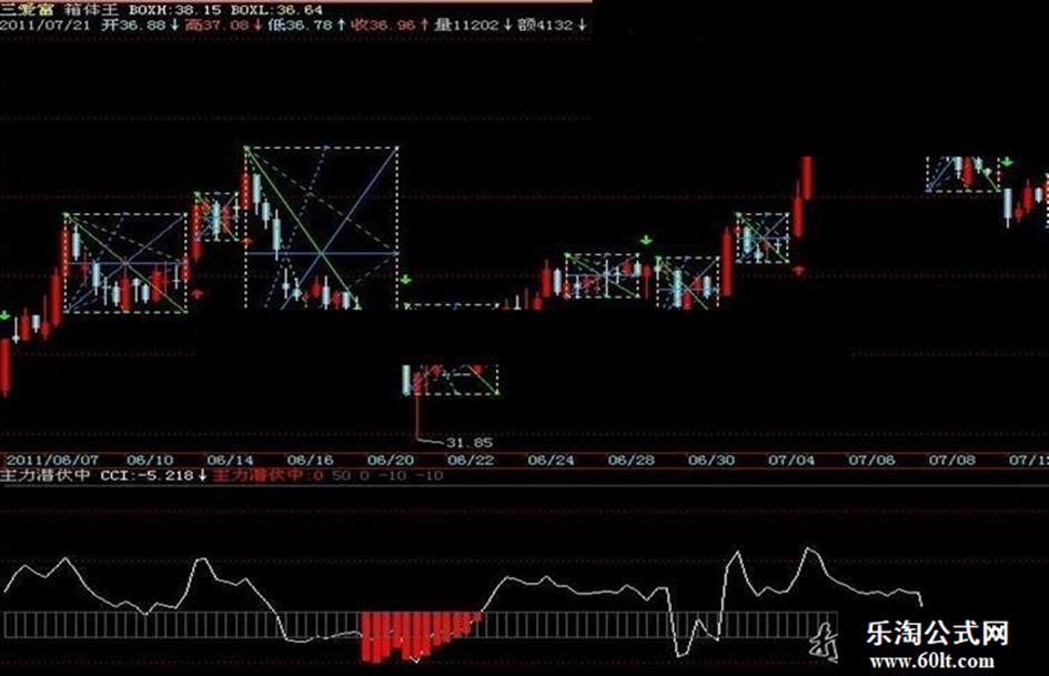 STICKLINE((top<>REF(top,1)or bot<>REF(bot,1)) AND xx=1 AND REF(xx,1)=5,top,bot,1,0),Color3399FF,linethick2;//左侧竖线