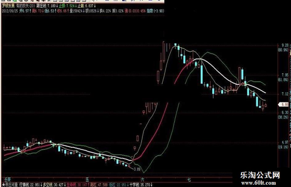 本指标是受三线合一的启发,换一个思维方式而成,应当算是原创吧.跟庄线这里设为20天线,可以根据个股和个人习惯调整.当止赢线在跟庄线下方运行时,上穿止赢线可择机买入,当止赢线在跟庄线上方运行时,股价下穿止赢线可视情止赢,下穿止损线应当止损.