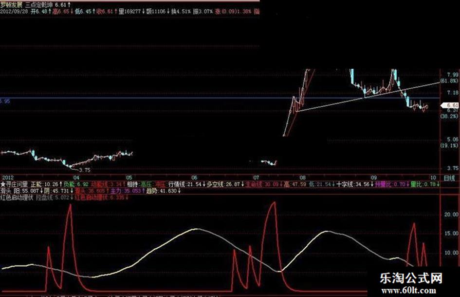 本人作了少许改动,并且增加了控盘线的变色,红色启动埋伏说明有主力进入,但不是买点,买点在控盘线上穿红色启动埋伏线或者控盘线变黄,控盘线由黄变灰为短期卖点,下穿红色启动埋伏线为出场时机。