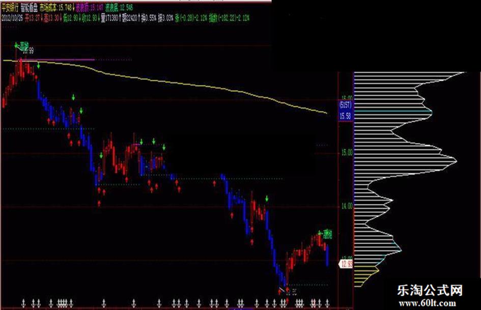 DRAWTEXT(CROSS(庄家,散户) AND 散户>60,H+0.05,'←高抛'),COLOR80FF00;