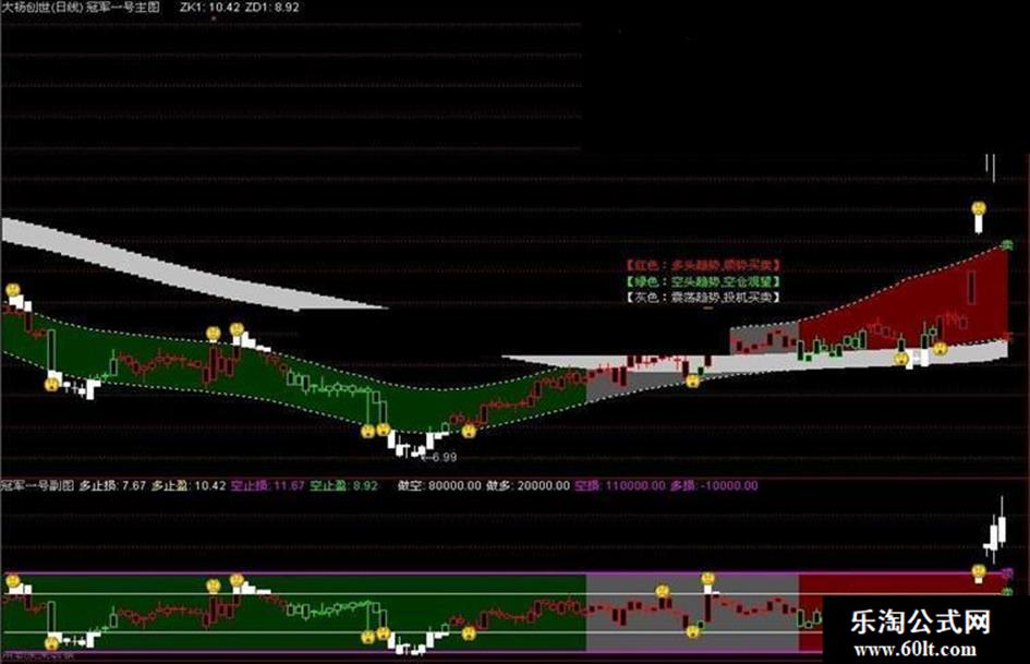DRAWTEXT(1=1 AND CURRBARSCOUNT=50,灰色线,'【灰色:震荡趋势,投机买卖】'),COLORLIGRAY;
