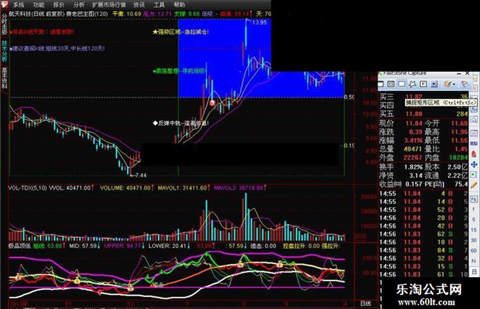 2、指标设计:【赛老巴主图】即是将主图所见全部K线,以坐标形式,自动分为上下左右四个部分;右侧