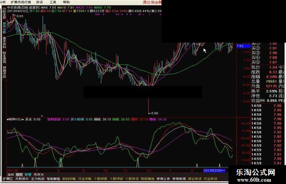 慢线:SMA(K,5,1),COLORMAGENTA;