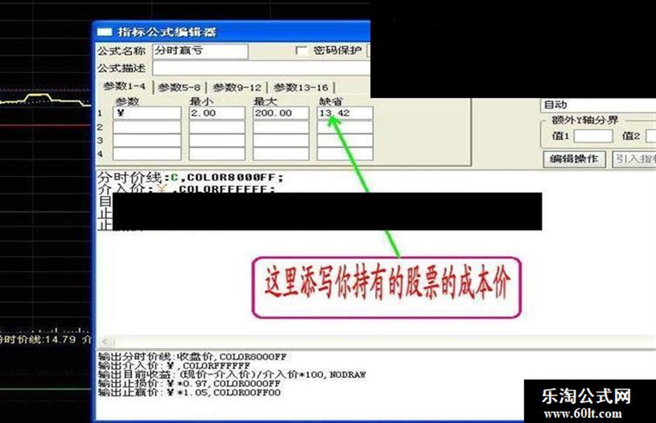 八 分时副图以止赢5%止损3%为依据(点位可自行更改),介入的个股要输入成本价,即可在副图显示三线(成本线,止赢线,止损线),以做盘中参考