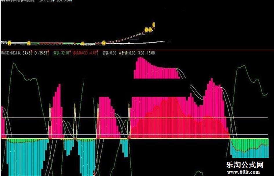 再发一个自用的自己组合的MACD+KDJ 附图;有一定参考意义;具体用法看图,既要看红柱,也要看多头红线运行 MACD+KDJ.tne