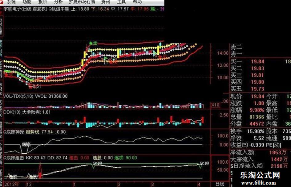 3。升跌势线:出现升势(洋红线)信号时,股价处于上升波段;出现跌势(白线)信号时,股价处于下跌波段。