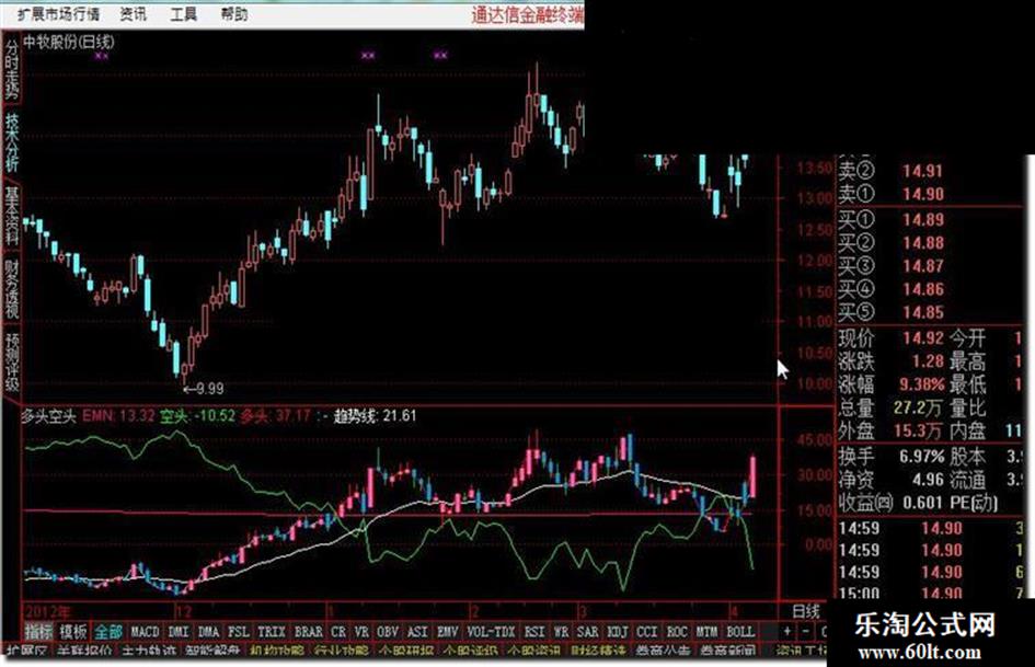 为答谢大家的厚爱,再发悲欢离合主图的姊妹篇,多头空头副图指标,关注多空线,及K线与趋势线,0轴和EMN线的关系。