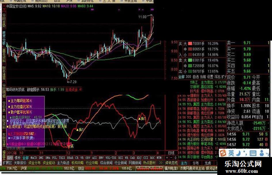 DRAWTEXT(TJ,主流资金*0.96,'▲换!'),COLORYELLOW,LINETHICK3;
