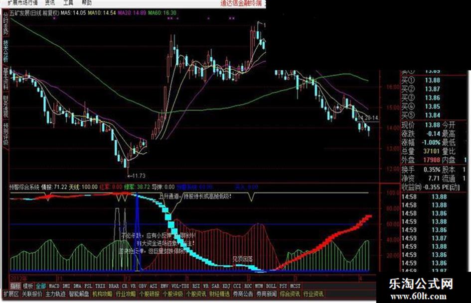 预警系统:=IF(VAR7>=200 AND VAR6>=150,15,IF(VAR7<=-200 AND VAR6<=-150,-15,VAR9))+60;