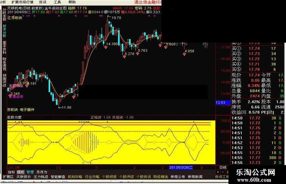 此指标采用三级体系,对走势力度进行全方位的镜像。不仅如此,其完美的指标画面,清晰而不繁杂的让人不知所措,并且适用所有的股软。如图: