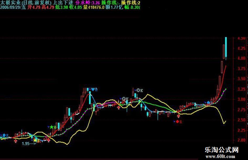 DRAWICON(CROSS(分水岭,操作线),分水岭-0.1,1);{买入红箭头}