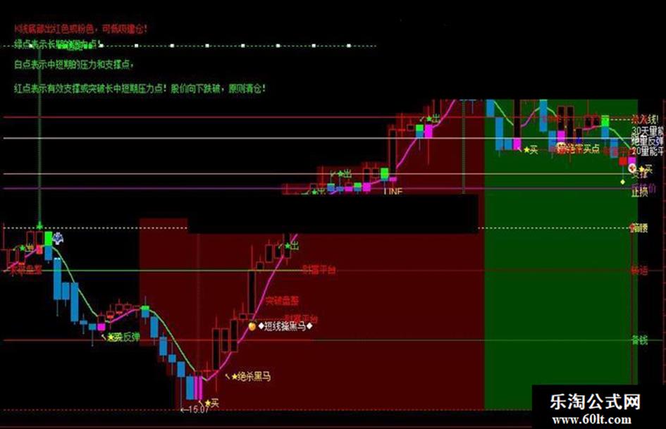 DRAWTEXT_FIX(CURRBARSCOUNT=1,0.02,0.16,0,'红点表示有效支撑或突破长中短期压力点!股价向下跌破,原则清仓!'),COLORGREEN;