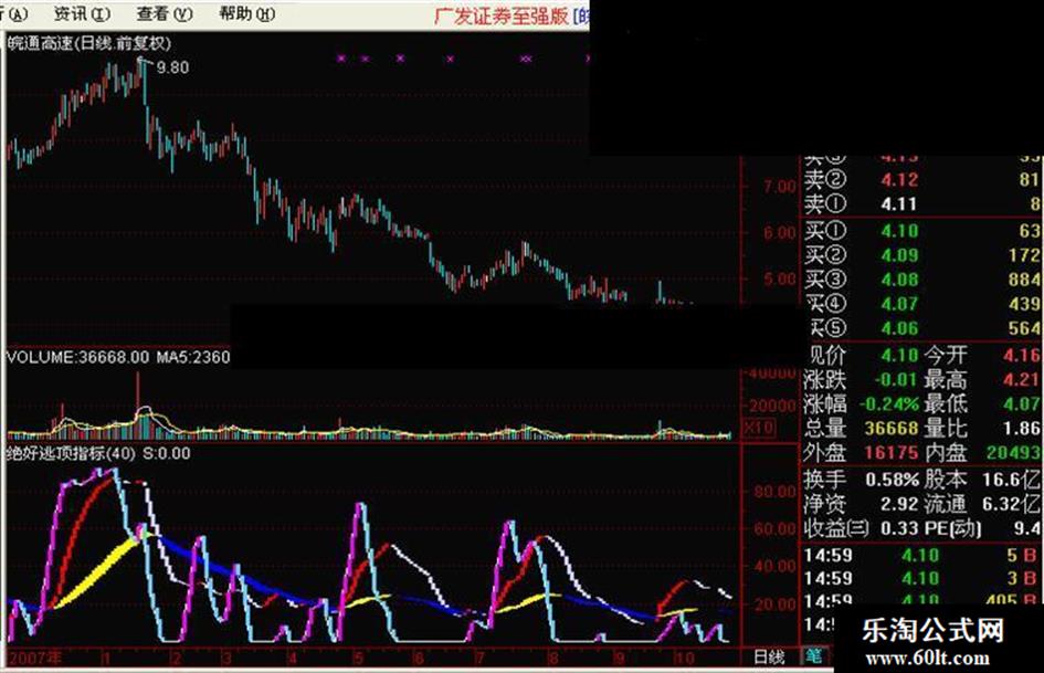 2.股票下跌连续出现青色柱线,在青色柱线没跌到底线消失之前不要急于抄底(个别情况例外),要经过几个交易日或者更长时间才能出现转机,这时再择机介入(用这个指标查看一下历史走势就能发现规律).