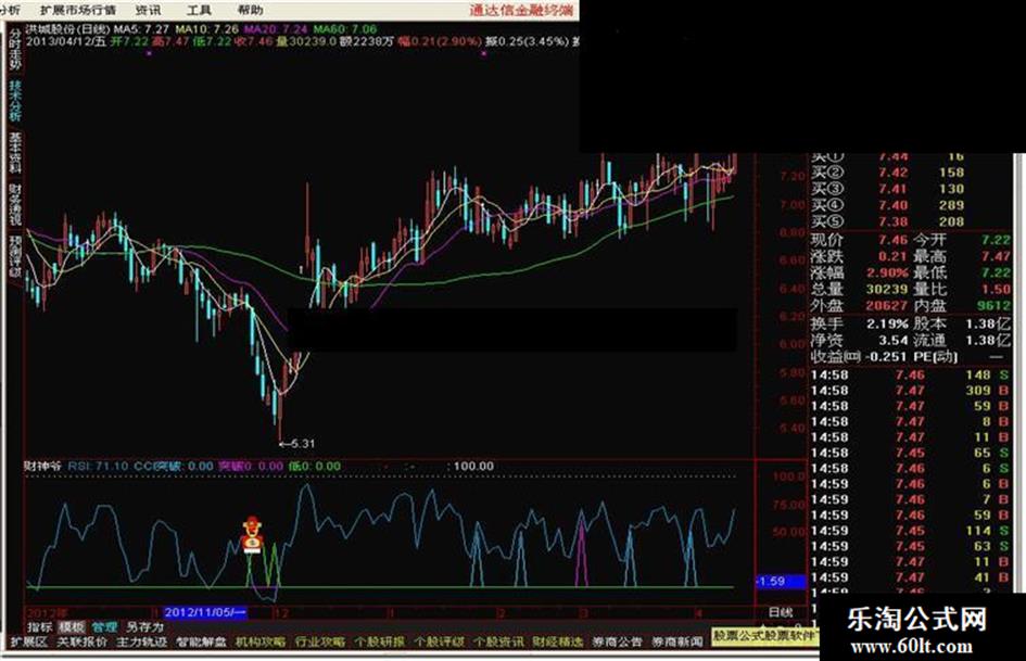 是一个温暖大家庭,我也奉献一个自己用的指标与大家分享,财神爷出现买入关注,在弱市下慎用