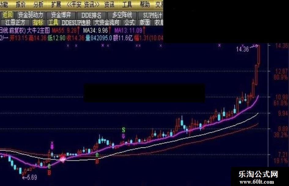 使用要点:股价底部涨上来站稳13日线均线带动13日均线上行的时候高度注意波段持续上涨机会,13日线金叉34日线中线牛股走势确定,一旦13 、34 、55三线金叉,中长线大牛股产生,好好持股等待主升浪
