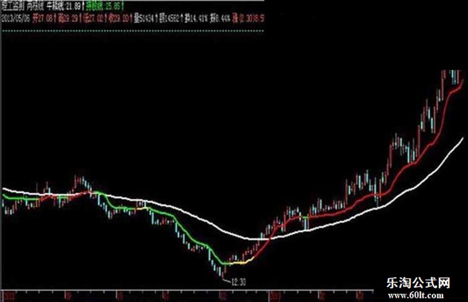 PARTLINE(持股线>EMA(持股线,3),持股线),COLOR00FF00,LINETHICK2;