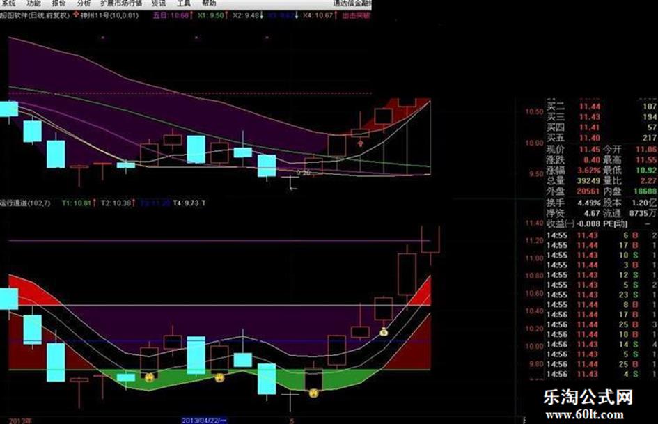 T3、T4是重心线比20日均线涨幅的动态值的上下7%波动的线;