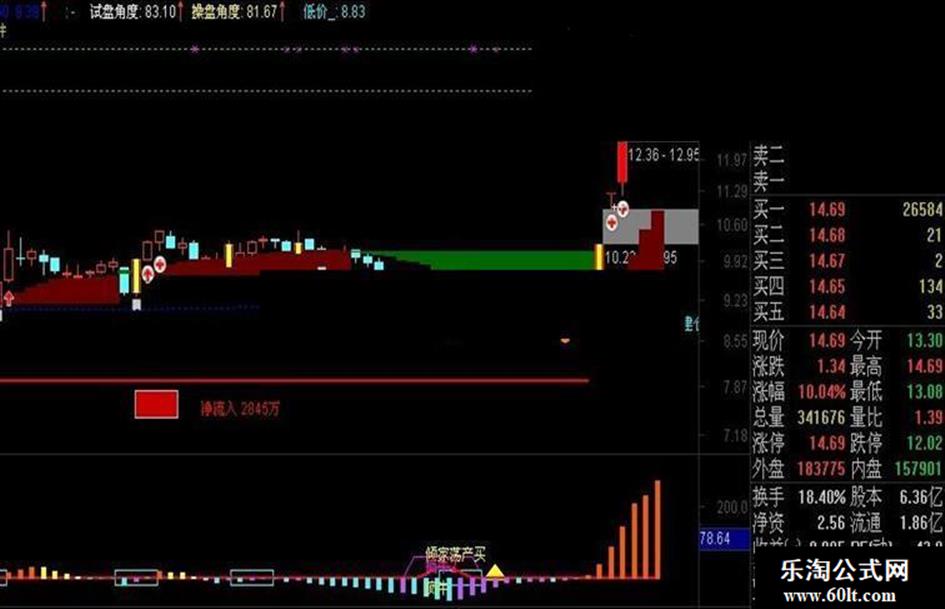 指标中如果出现紫柱跟蓝柱交替,就是空头趋势,此时只要两个柱体交错,我们坚决不拿股票,说明空头趋势已经降临,任何时候,买入股票都是错误的,如果是红色柱体跟黄色柱体交错的话,说明此时股票还是多头趋势,在多头趋势的情况下,我们任何时候持有股票都是正确的。如果在指标当中,出现各个字体标注,如果是疯牛,或者倾家荡产买股票等字眼,说明此时我们应该高度重视,这个时候,很容易变盘,如果出现柱体交换的话,我们就可以买入股票!!但是一定要遵循市场的原则,红色柱体跟黄色柱体消失之后,要毫不犹豫的卖出股票!!此指标的重点就在于通过四个柱体的颜色,我们来判断多空趋势,仅仅是判断多空趋势以及大盘强弱的指标,而非买卖点的指标