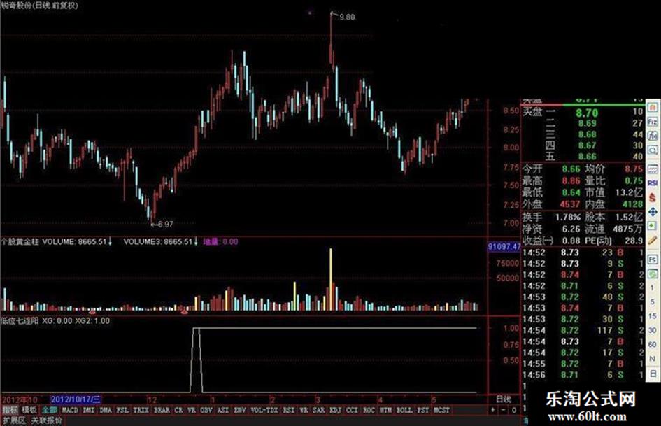 低位七连阳介入时机选择七连阳之后的缩量回调,等再次放量的时候就是介入该股的最佳时机