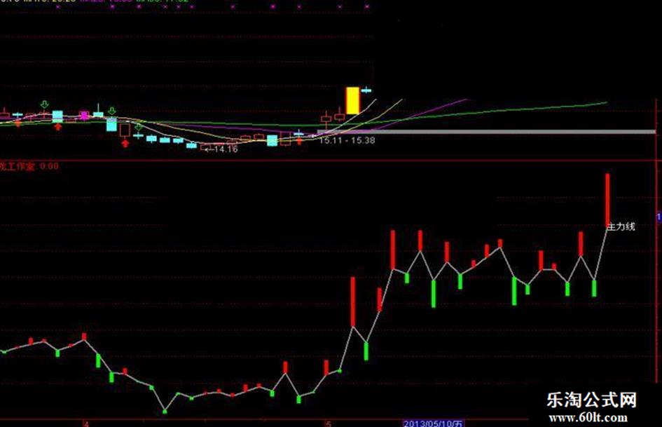 STICKLINE(DT<0,主力持仓线+DT,主力持仓线,0.5,0),COLOR00FF00;