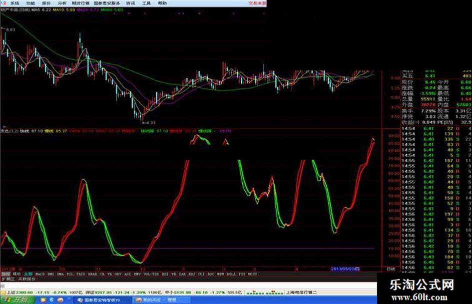 紫线下快慢线金叉,K线站上十日线买入。上行不变绿一直持股。