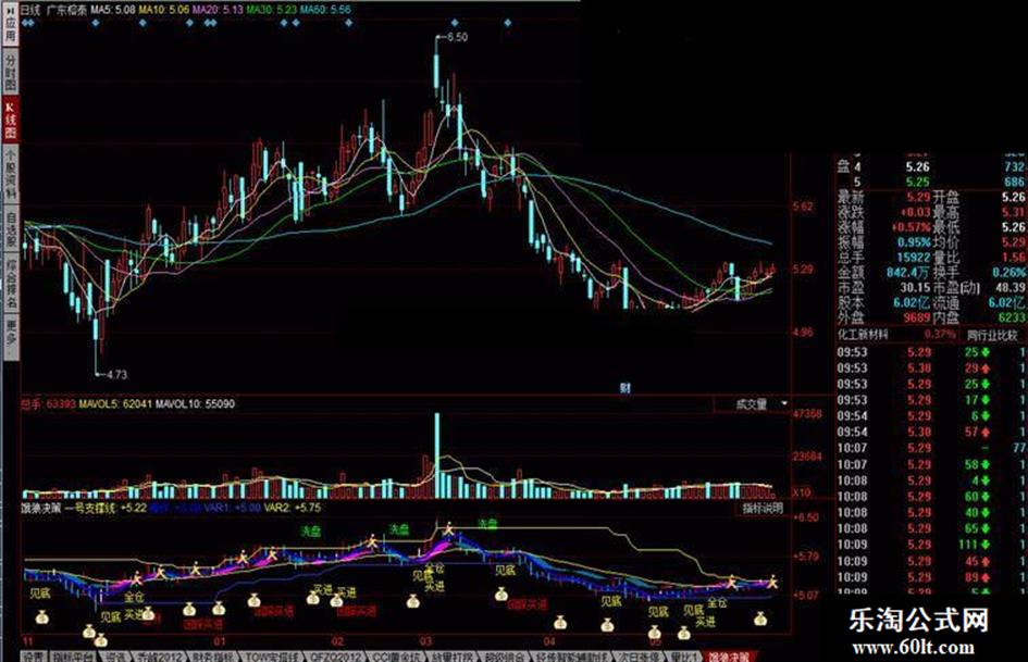 线 AND CLOSE>VAR1,LOW *0.98,'见底' ),coloryellow;
