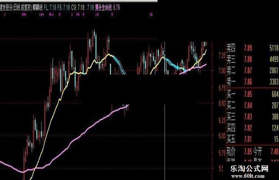 搏杀生命线:IF(VAR5/REF(VAR5,1)>1.1 OR VAR5/REF(VAR5,1)<0.9,VAR6,VAR5),COLORFF80FF,LINETHICK2,;