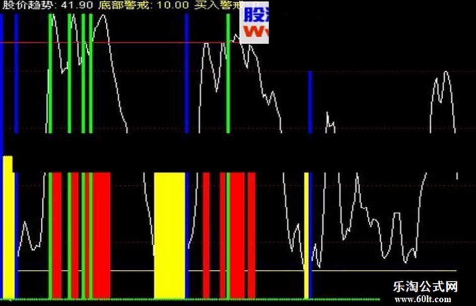买入警戒: IF(股价趋势<=10,50,0),stick,linethick3,coloryellow;
