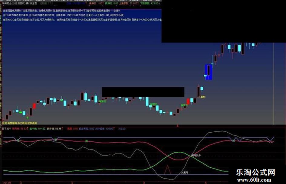 大势已去:=IF(CROSS(骑马线,A1)AND 骑马线>70 AND 找牛线>80,90,100);
