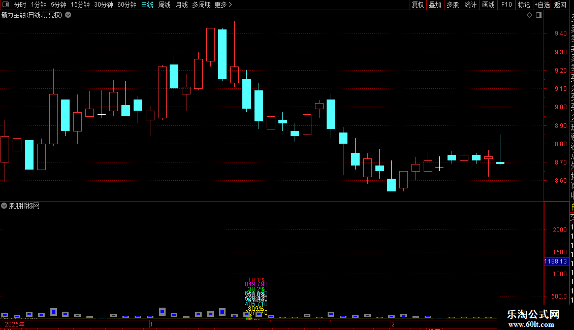 4. 资金流向:结合Level-2数据,在K线实体内部通过颜色变化(紫红色/绿色)直观显示大单资金的净流入/流出状态。