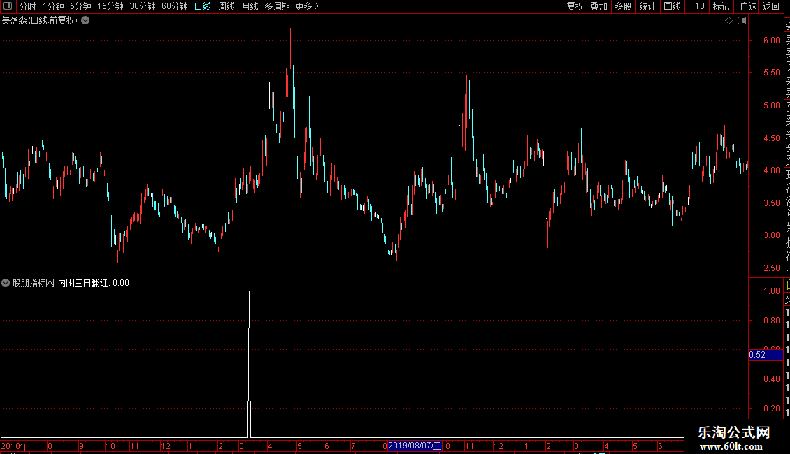 - 当“内困三日翻红”条件成立时,指标标记买进信号。