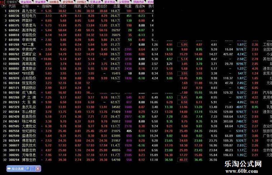 M21:=MA(C,21); M55:=MA(C,55); A0:=M21>REF(M21,1) AND M55>REF(M55,1); A1:=COUNT(V>REF(V,1),2)>=2; A3:=KDJ.K>KDJ.D; A4:=MACD.DIF>0; A5:=CCI.CCI>100; A6:=C>BOLL.BOLL; {ST:=IF(NAMELIKE('S'),0,1) AND IF(NAMELIKE('*'),0,1);} S2:=DYNAINFO(4)>0; A0 AND A1 AND A3 AND A4 AND A5 AND A6 AND S2;