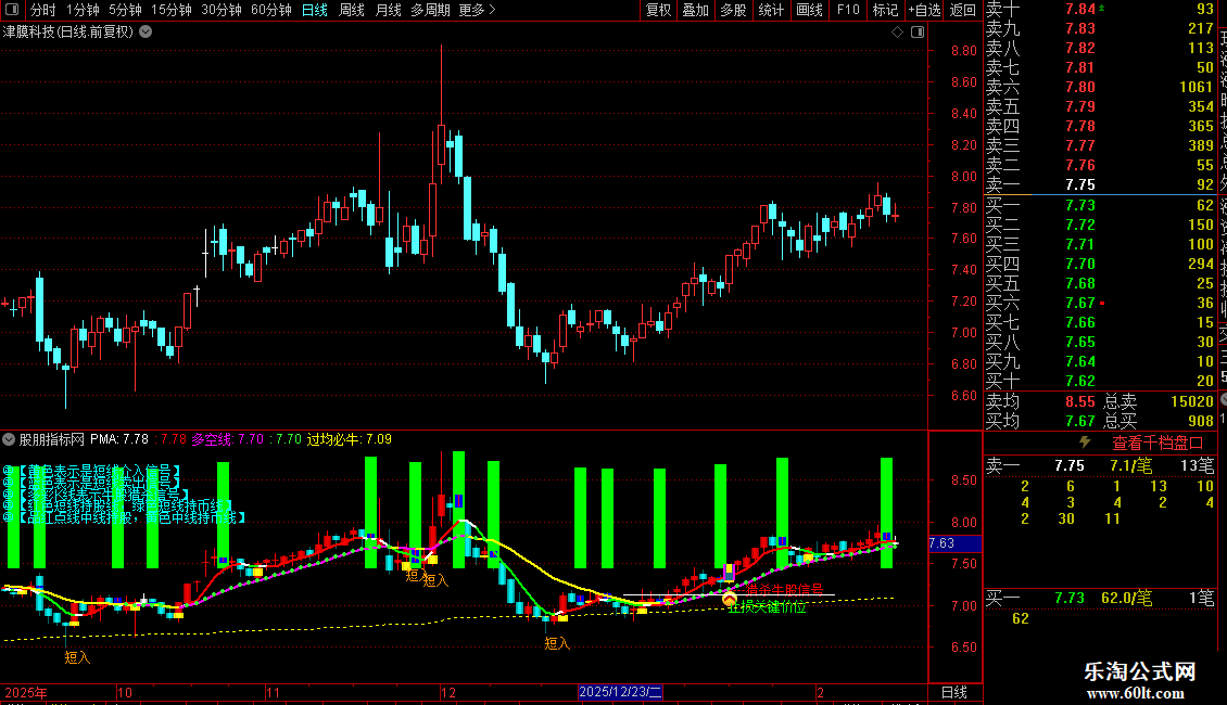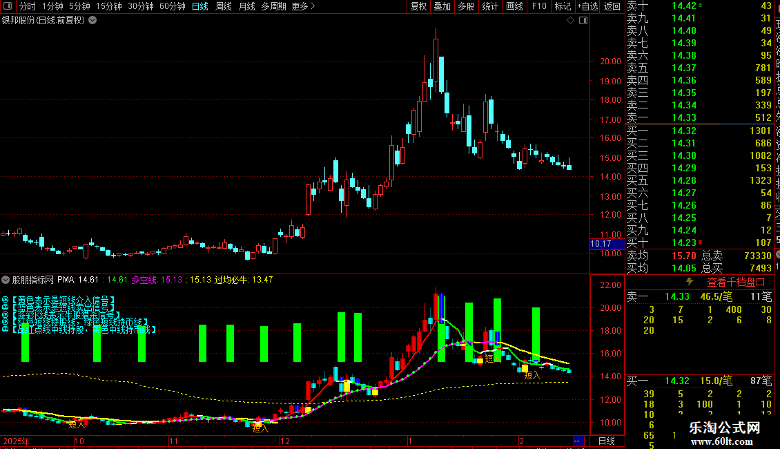均线(PMA与多空线)的金叉死叉、颜色变化用于判断短期与中期趋势方向。
