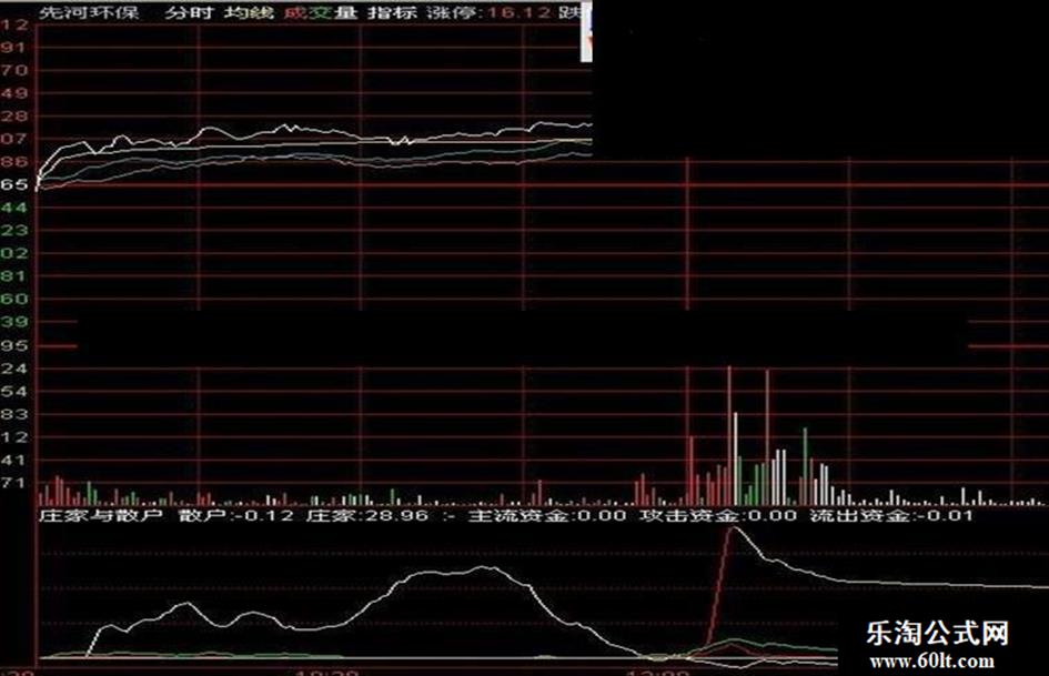 “庄家与散户”我在论坛中分享来的指标,具体出处我记不得了,无意中我发现把它用分时图中打开,发现有意想不到的效果,开盘几分钟之内就能抓到涨停板的票!