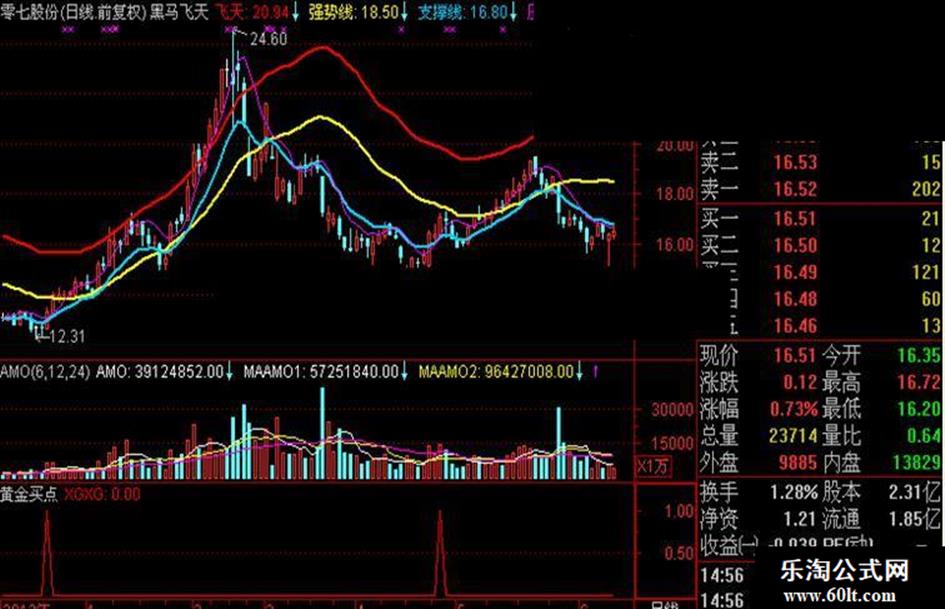支撑线:(MA(CLOSE,3)+MA(CLOSE,6)+MA(CLOSE,12)+MA(CLOSE,24))/4,COLORFFCC00,LINETHICK2;
