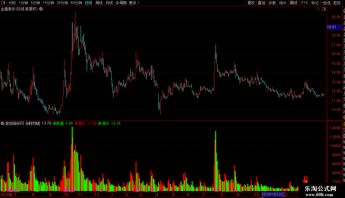 10. 高低点标记:在当日最高价和最低价位置分别标注“高”和“低”。