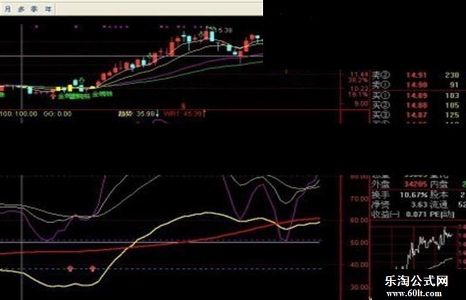 抢钱:DRAWTEXT(CROSS(中线2,-90) AND (长线<中线 AND 长线>REF(长线,1)OR 短线<20 AND 中线<20 AND 长线<20),长线,'黄金坑'),COLORFF00FF;